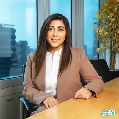 בתאל גטו יושבת ליד השולחן במשרד עורכי הדין שלה